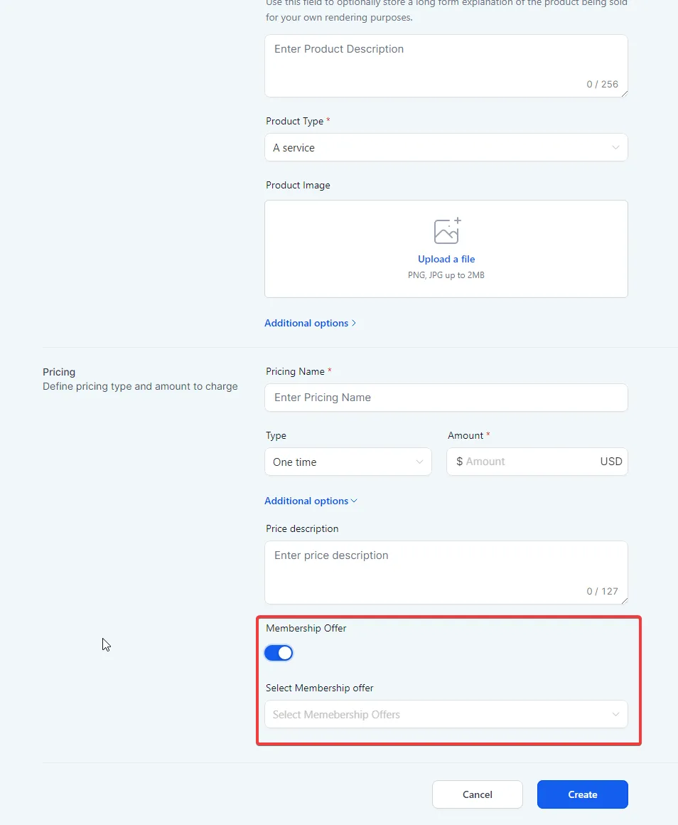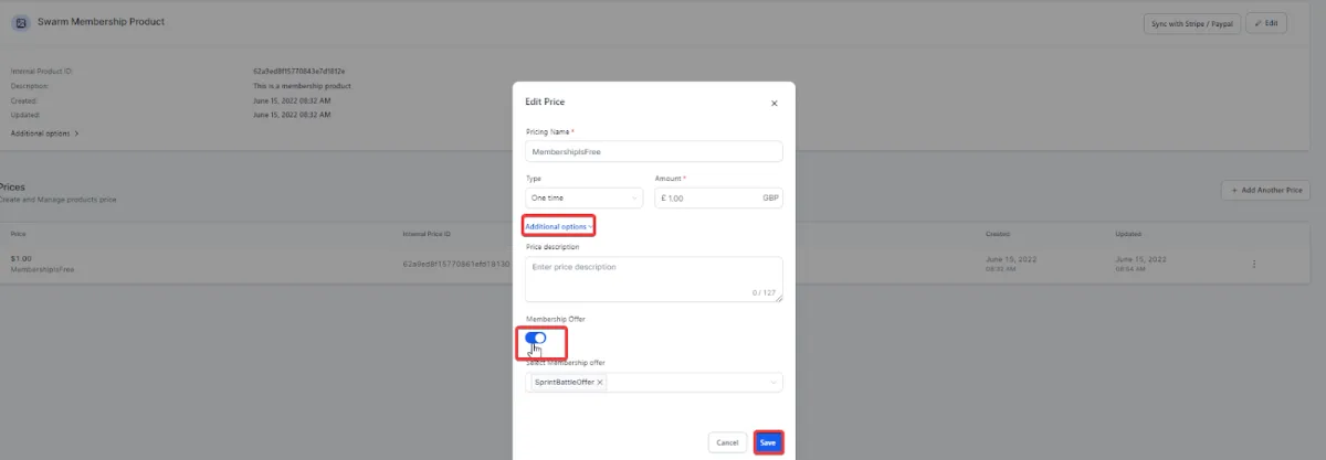 Fill in the data requested, and select “additional options” under the pricing section to toggle on and select your membership offer.