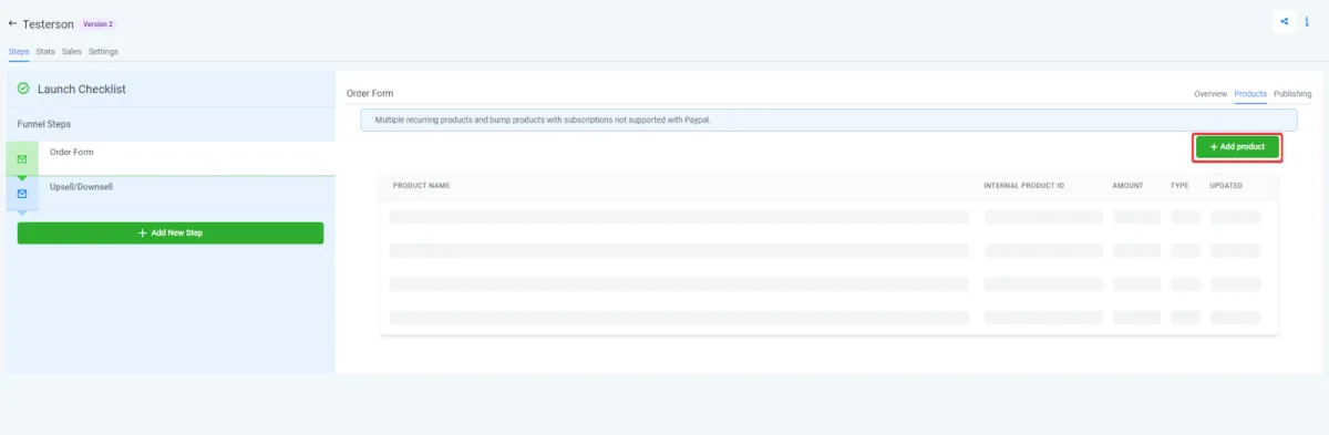 Next, navigate to your funnel and select “products”