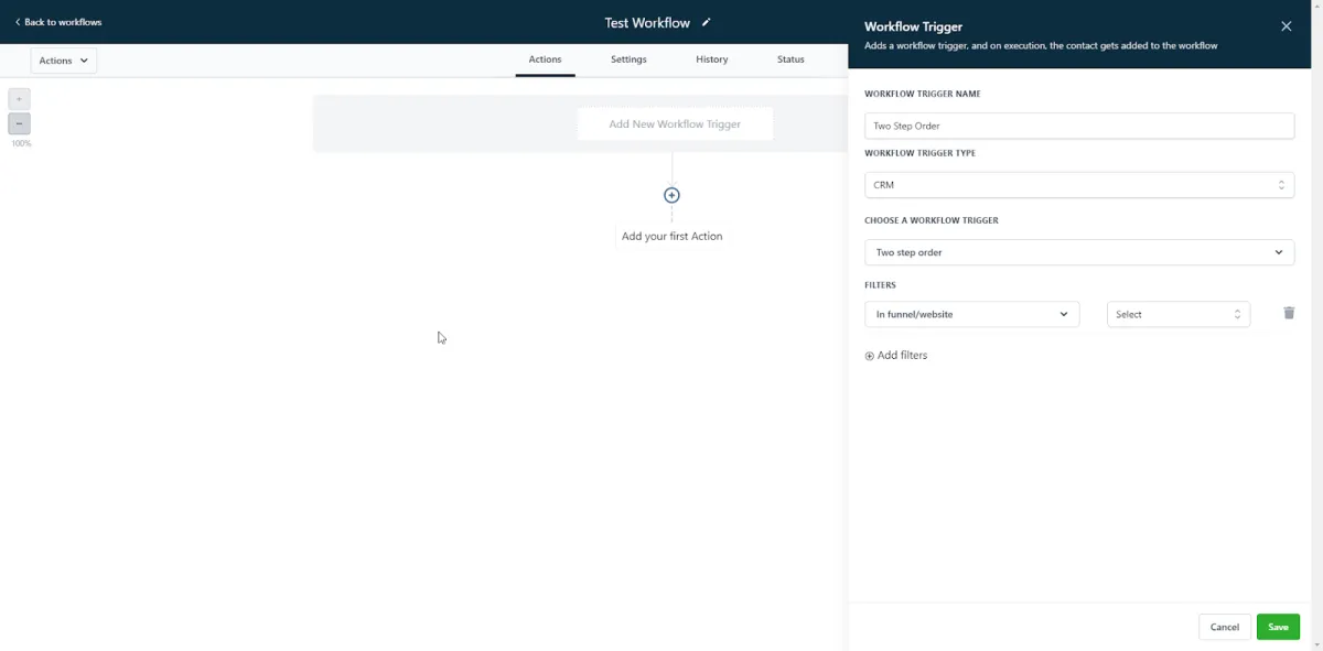 In this example, we’ll use a two step order form. Similarly with triggers, you can filter by a particular funnel, page, and submission type.