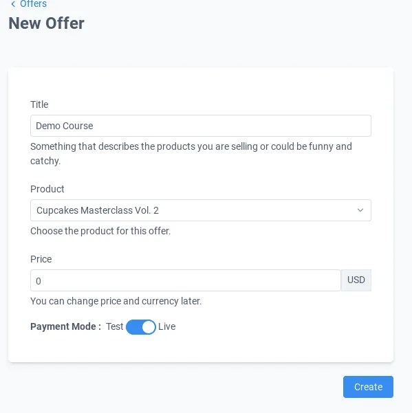 Give a title to this offer, connect it with a product, and give it a price.