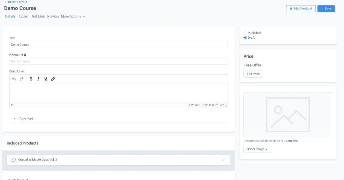 Add the image that will be displayed next to your course