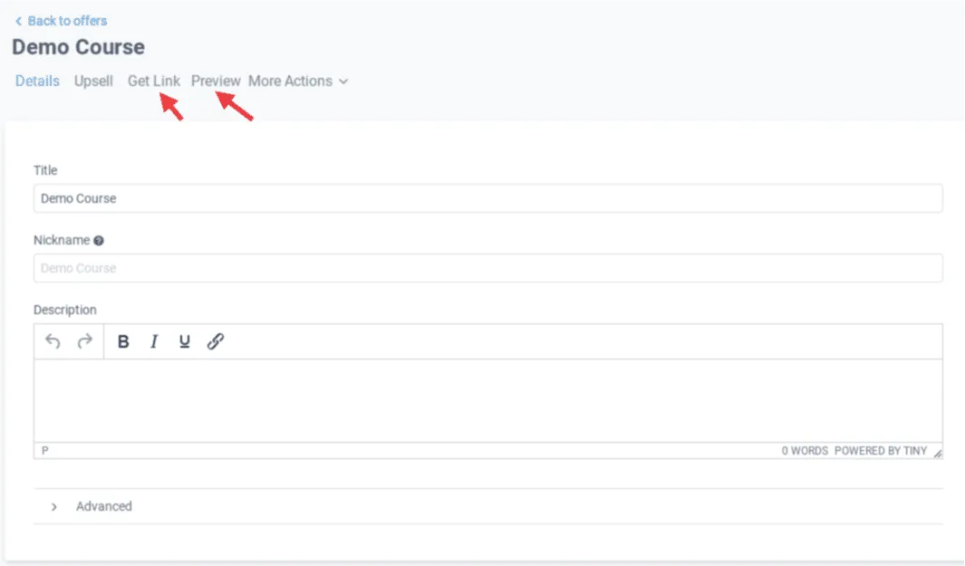 Click the preview link to see how your offer would look like