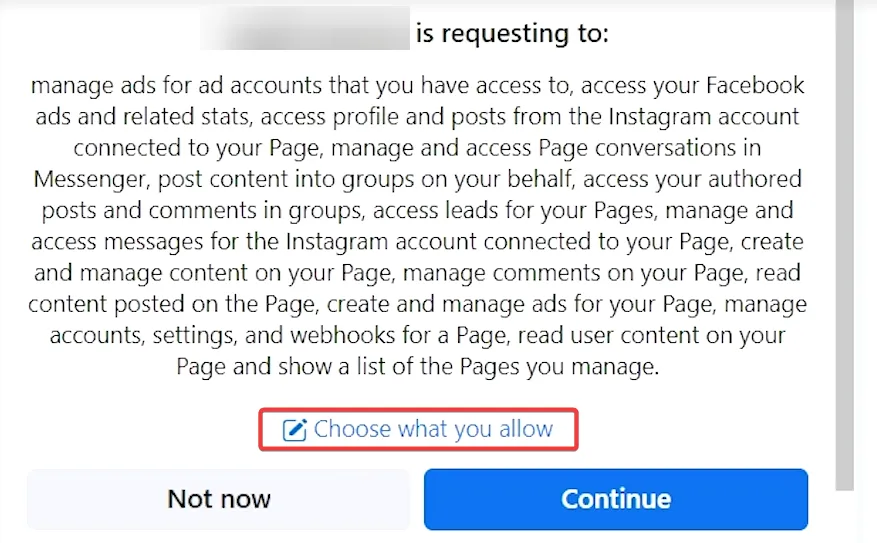 Note: You will only need to connect the credentials once, make sure to allow all permissions and all pages during the request process.