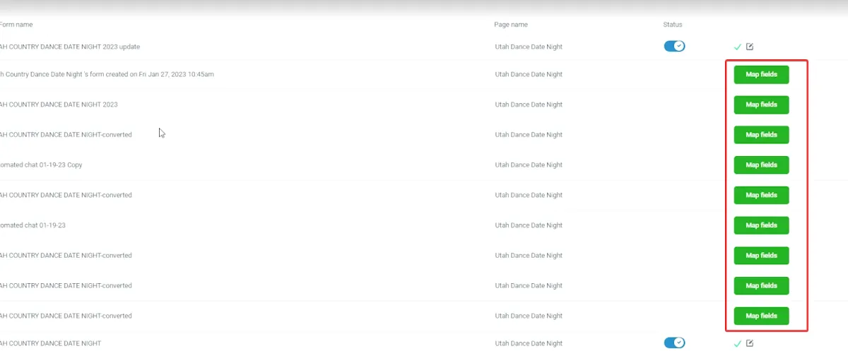 Step 2: Once the Facebook account has been connected, you'll want to review your Facebook Lead Ads Forms.